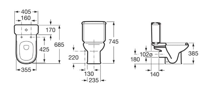 Inodoro completo Roca Dama Retro de alimentación inferio y asiento con bisagras de plástico. Incluye juego de fijación.